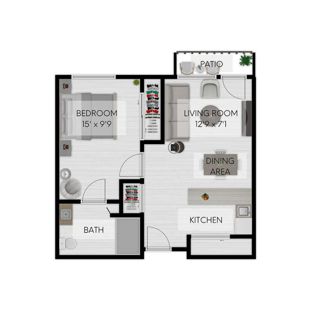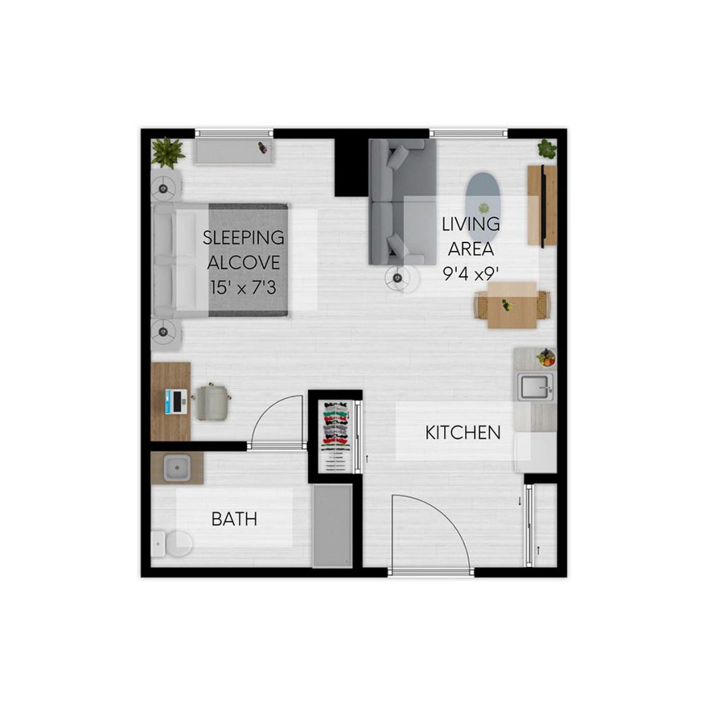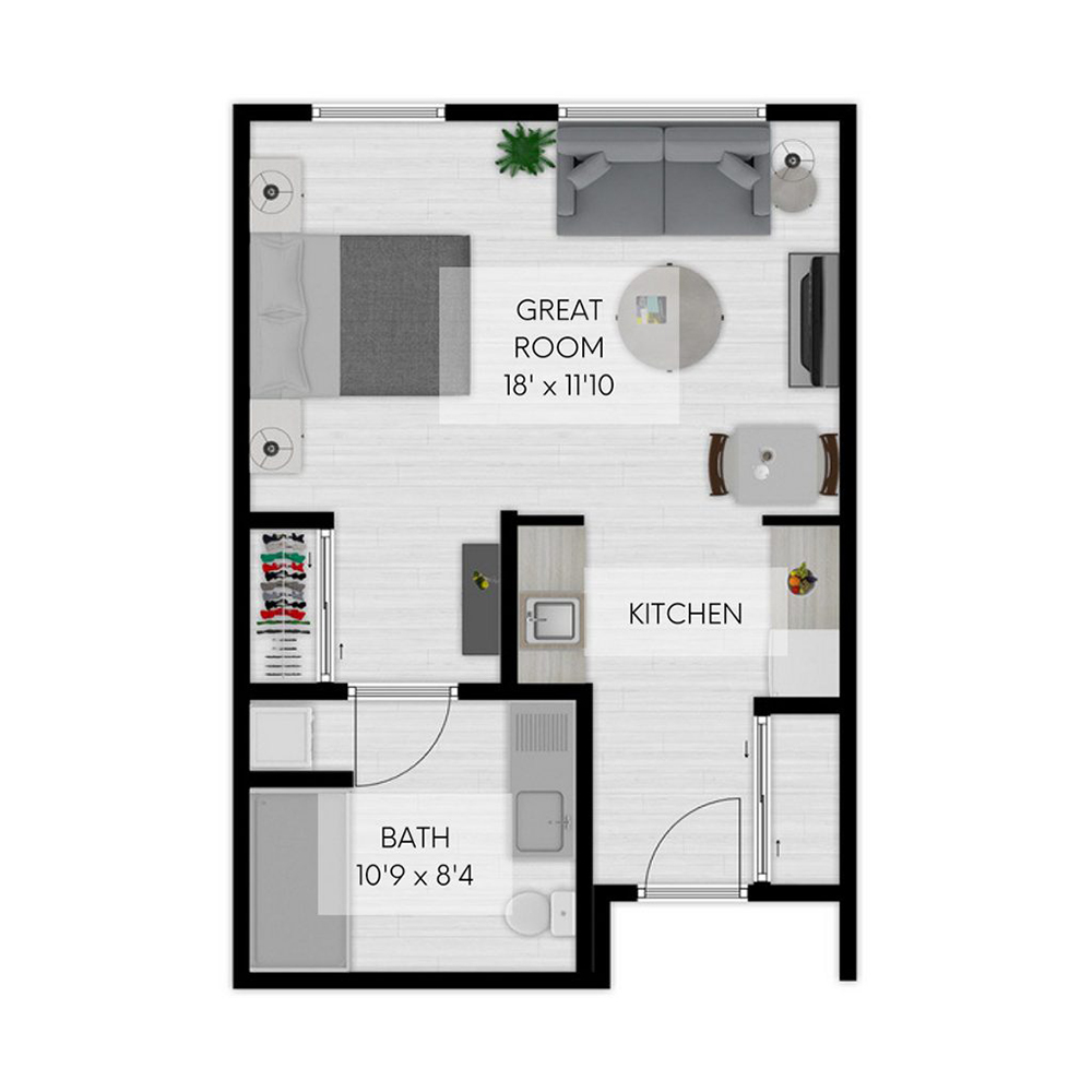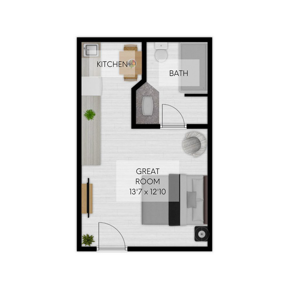 Please browse through our one bedroom floor plans for Assisted Living below!