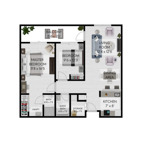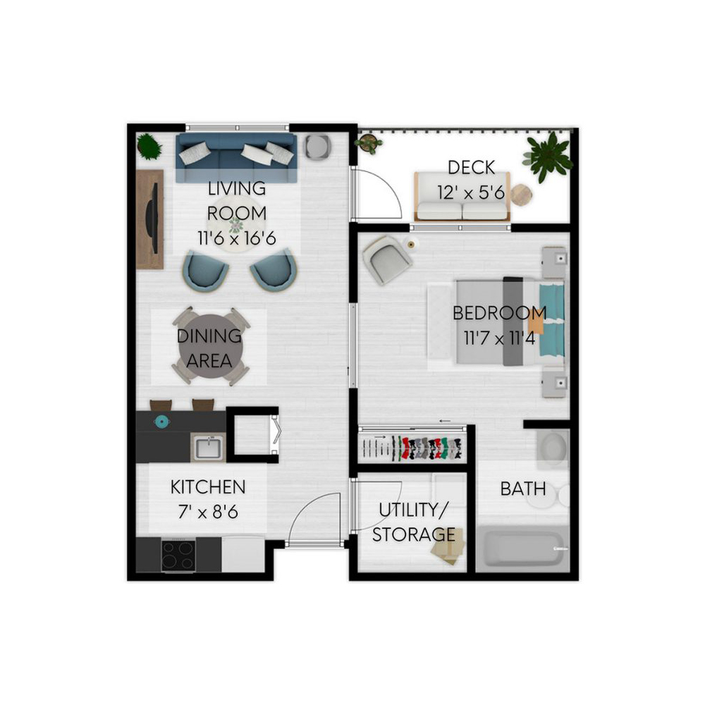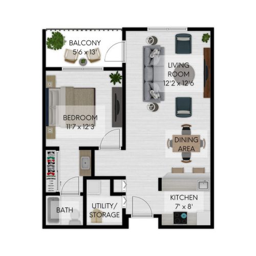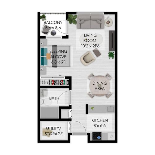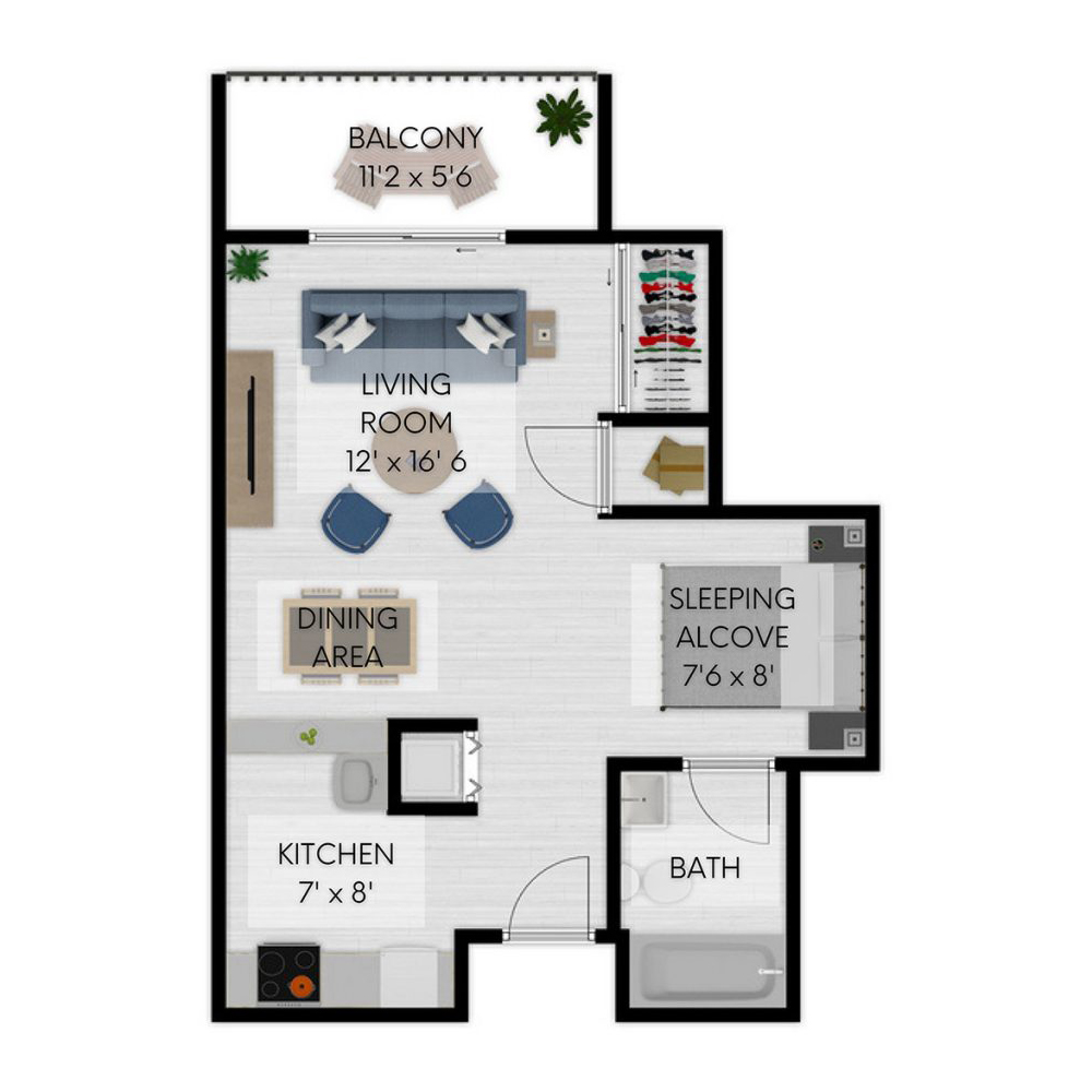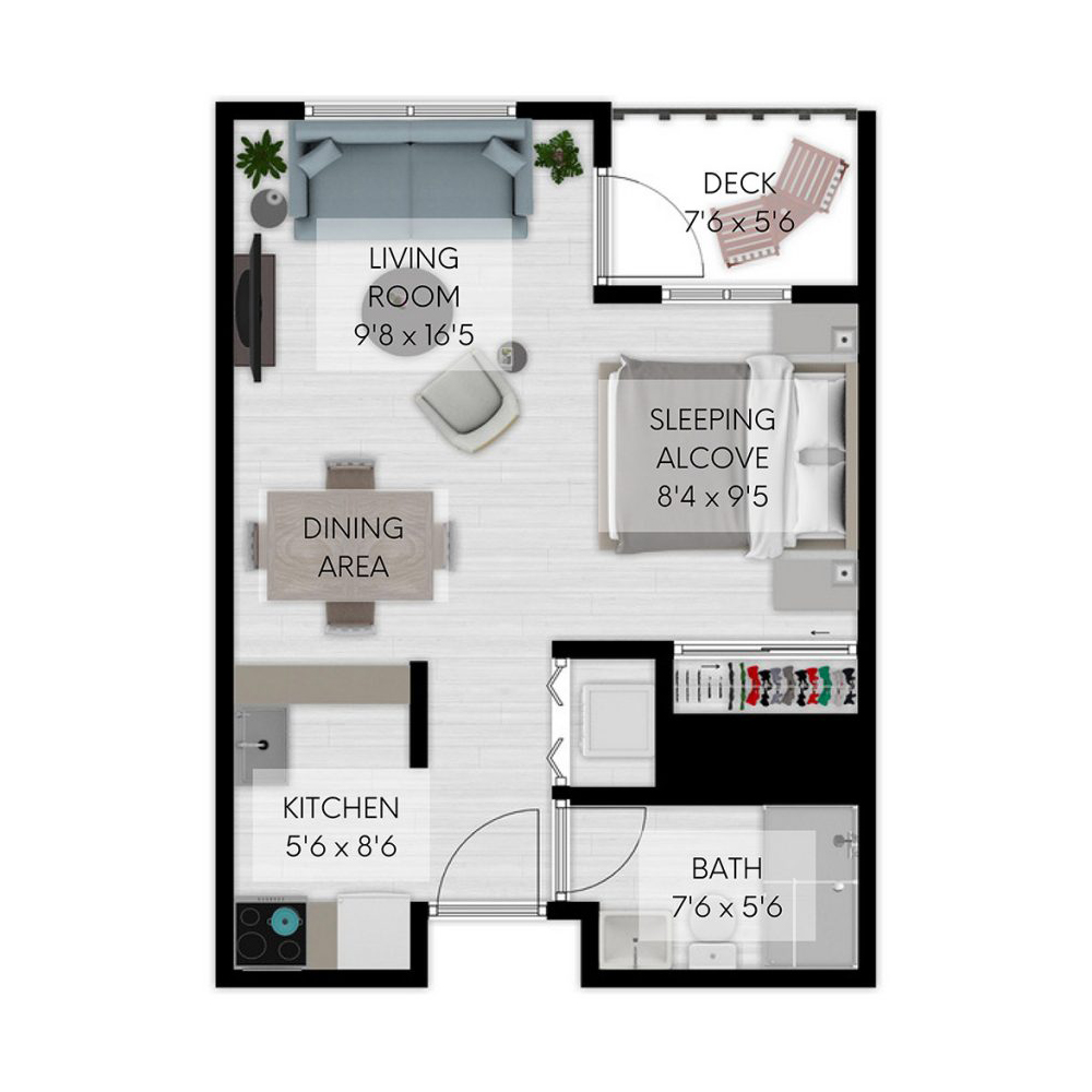 Please browse through our one bedroom floor plans for Assisted Living below!